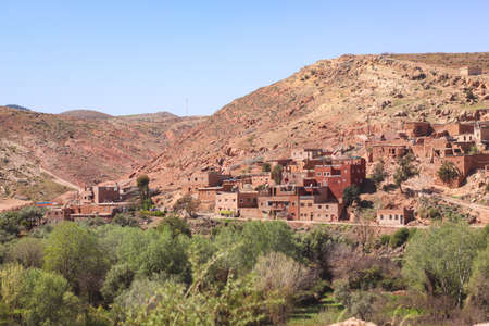 adobe village in the mountains of the Atlas of Morocco