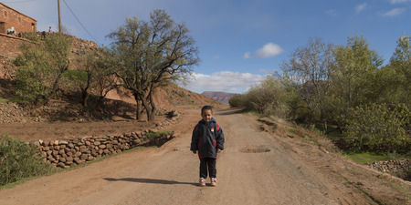 Boy walking on the dirt road, Morocco