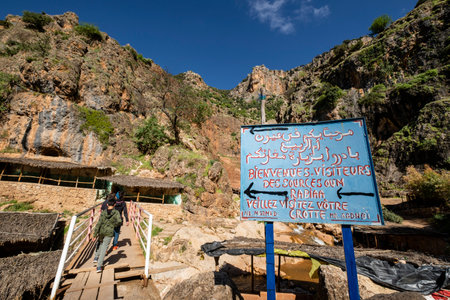View of Ouzoud Waterfall in the mountain Atlas, village Tanaghmeilt. Morocco