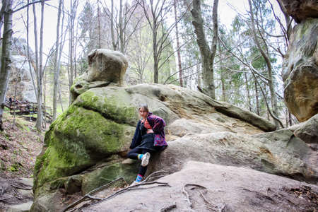 famous touristic place in nature, interesting rock formation with name Devil Ass in reservation Czech Canada, Czech Republic