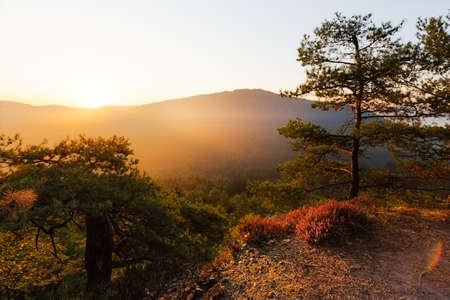 rocky mountain in the resort area of Borovoe in Kazakhstan at sunset
