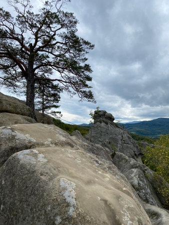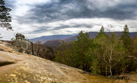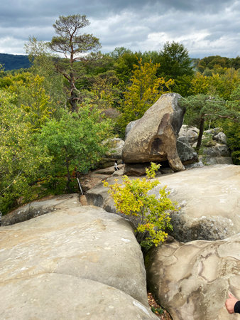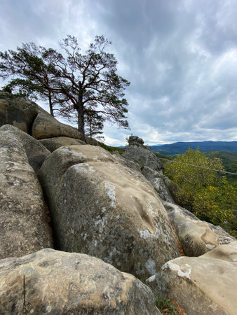 the rocks of Dovbush view in Ukrainian Carpathian, Polyanytskiy Regional Landscape Park, Ivano-Frankivsk region of Western Ukraine
