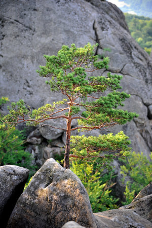 Life of trees among the rocks. Lonely pine growing among the rocks.