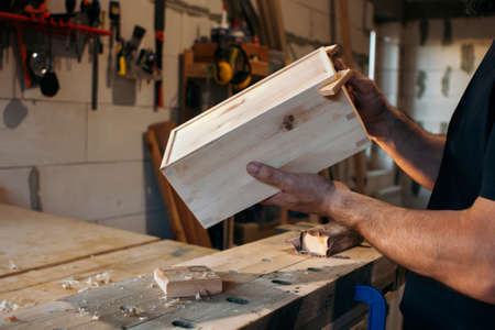 Carpenter making wooden box