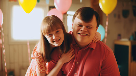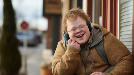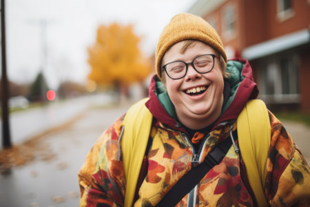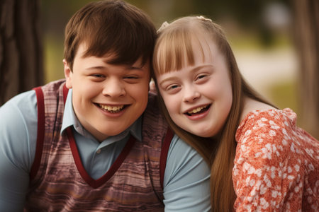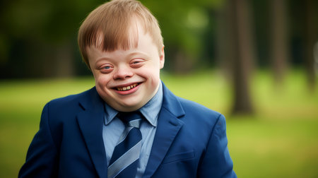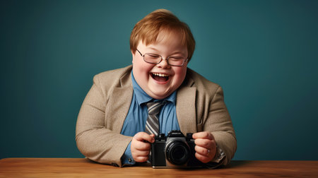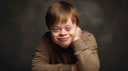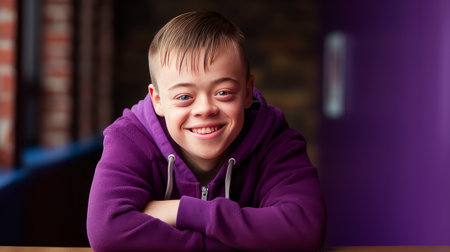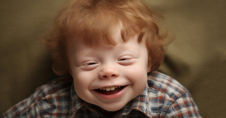 Down syndrome persona, resilience and positivity, radiant joy, genuine smile