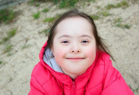 Portrait of down syndrome girl outside