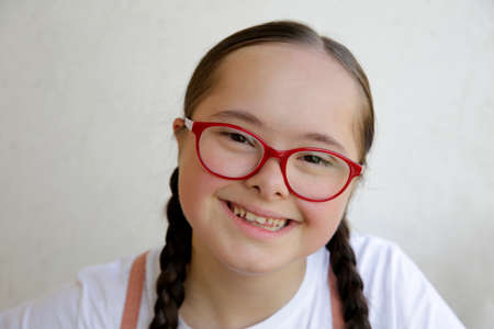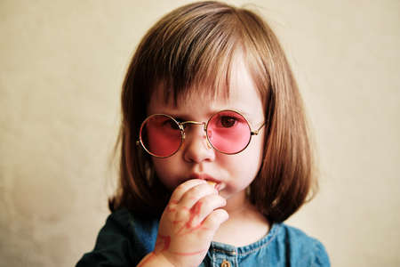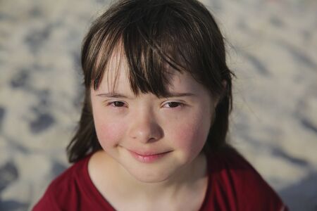 Portrait of beautiful little girl having down syndrome