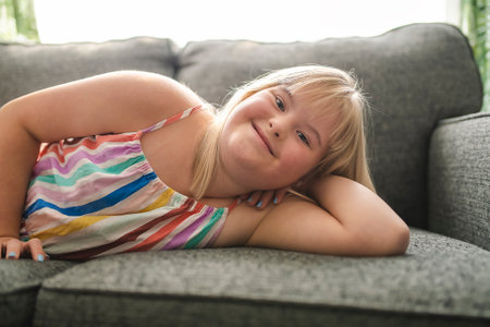Happy girl with Down syndrome having fun and laughing.