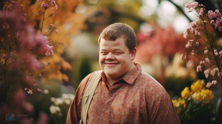natural beauty of an adult male with Down syndrome in the serenity of a garden.