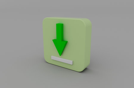 Green download icon, close-up, 3d illustration.