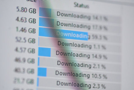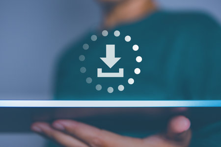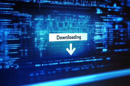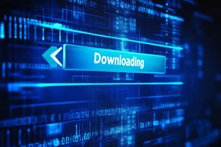 A vibrant blue digital screen showcases a downloading progress bar with an arrow, representing the seamless transfer of files in the tech world.
