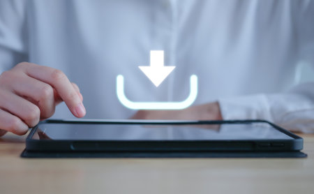 Tablet screen displaying a download concept