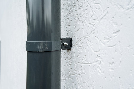 Metal downpipe at the corner of the house