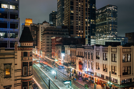 Night has fallen over Minneapolis Minnesota as rush hour traffic still moves on the highways
