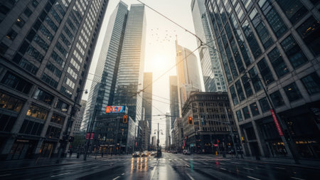 downtown financial district and city skyline, city, glass tall buildings, Generative Ai