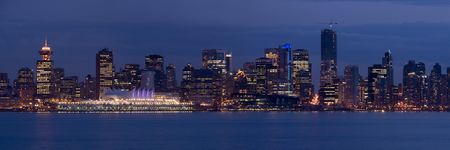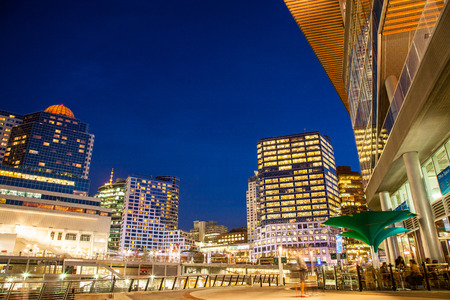 VANCOUVER, CANADA - September 21, 2011 : City night, Seen from Vancouver Convention Center at dawn in Coal Harbor. Vancouver, British Columbia, Canada.