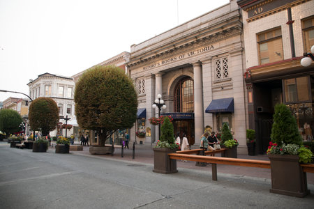 VICTORIA,CANADA - JULY 5,2018 - Evening in the streets of Victoria city. Victoria is the capital of the Canadian province of British Columbia, is on the southern tip of Vancouver Island.