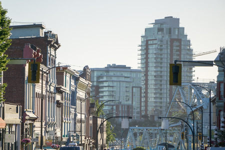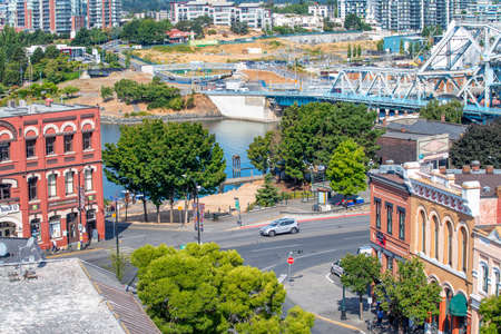 VICTORIA, CANADA - JULY 14, 2019: historic neighbourhood of the city commonly called Vic West across upper Harbour