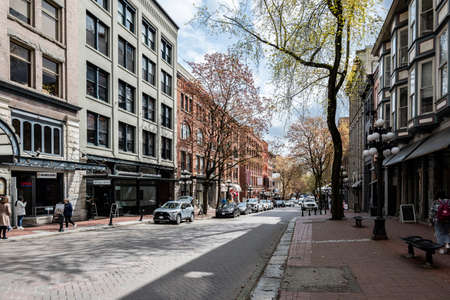 Street view in Gastown - the beautiful historic district in Vancouver - CITY OF VANCOUVER, CANADA - APRIL 11, 2017
