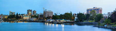 VICTORIA, BC, MAY 08 2019: Downtown Victoria, Canada. Night scene of the harbour in downtown victoria, british columbia, canada