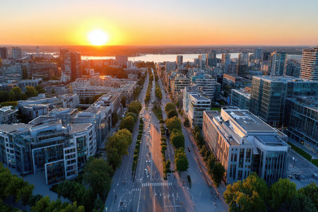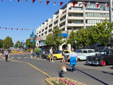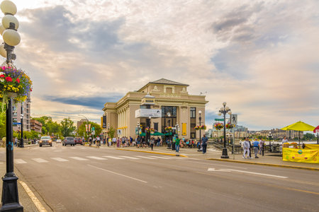 Victoria Island, Canada - August 9, 2023: Summer evening urban atmosphere in the heart of Victoria Island.