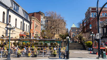 Victoria, BC, Canada - April 14 2021 : Bastion Square staircase. A historic pedestrian mall in Victoria, British Columbia.