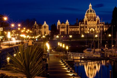 Victoria, British Columbia, CANADA - September 17, 2011 : Night view of Inner Harbour in Victoria, British Columbia, CANADA