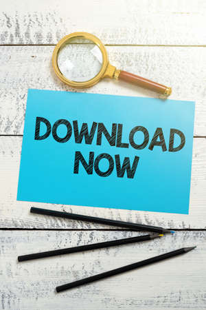 Conceptual display Download Now. Business concept To copy or move programs or information into another device Piece Of Paper With New Ideas With Magnifier And Pencils Around.