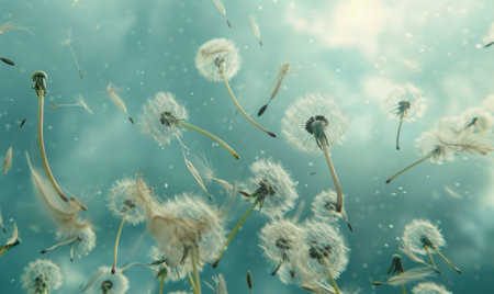 Abstract dandelion seeds floating in the air, evoking a sense of delicate beauty and natural elegance.