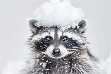 Playful raccoon with foam on its head, enjoying a bath and showing a cute and innocent expression. Generative AI