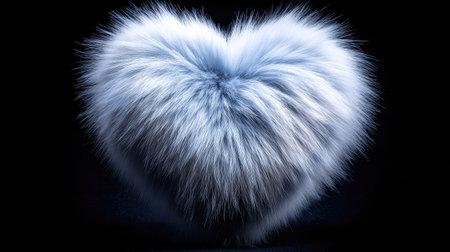 A close-up view presents a soft, fluffy heart shape in shades of blue against a dark backdrop. The composition features a textured, fur-like appearance, suggesting a tactile quality. The artwork's lighting creates a sense of depth and dimension. This image may be used for various projects needing a visual element for love or tenderness.