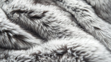 Close-up of Faux Fur Fabric in Soft Grey Color. Concept of Textile Material, Cozy Texture, Winter Fashion, Home Decor.