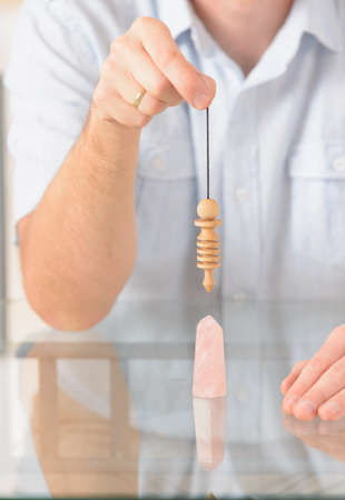 holding and using quartz crystal pendulum and using it In asking questions. Quartz Crystal Pendulum Hanging over a Hand