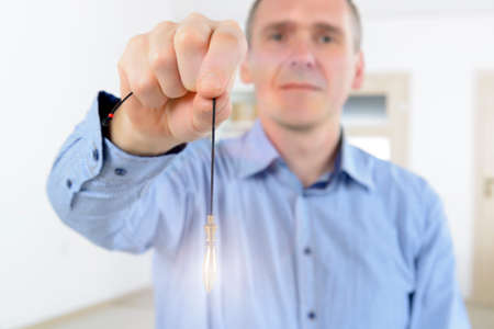 Hypnosis session. Man in glasses swinging pendulum indoors