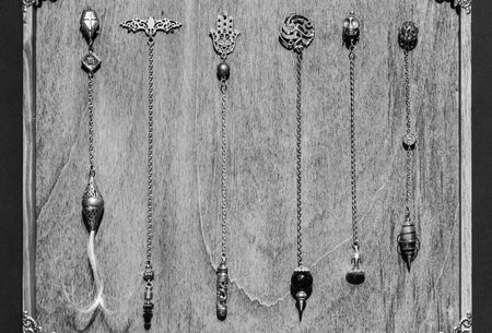Esoteric magic pendulum collection. Vintage symbol of esoterism, withcraft and fortune-telling