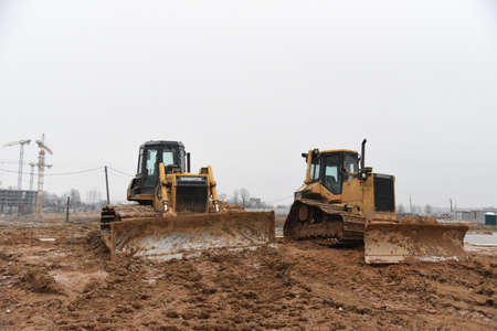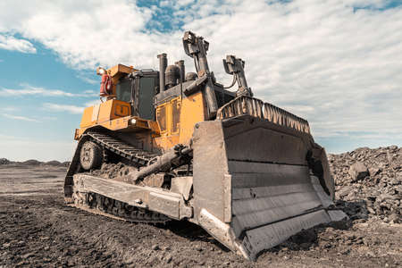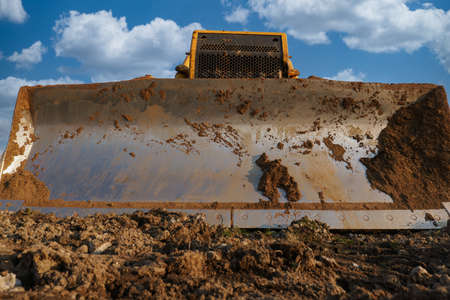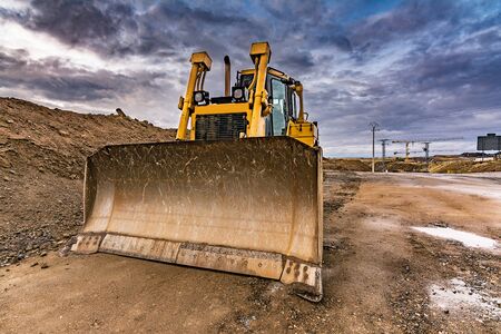 Bulldozer on the construction site. Heavy duty construction equipment.