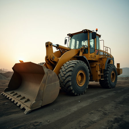 Yellow Bulldozer at Sunset: Powerful Machine Ready to Work Hard Now