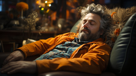 Young man enjoying a peaceful nap in a relaxed indoor setting