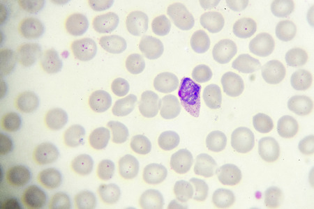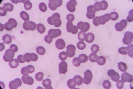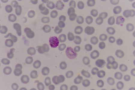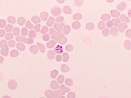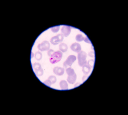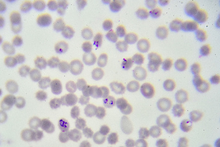 Malaria blood parasite infected red blood cells laboratory background.