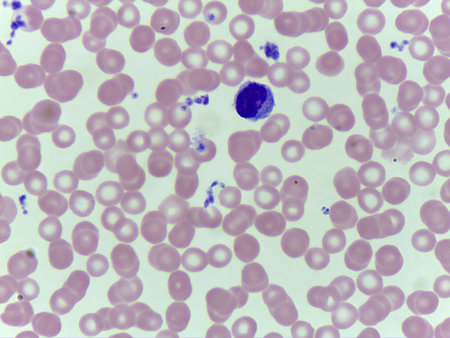 Abnormal red blood cells in Blood smear Thalassemia patient.