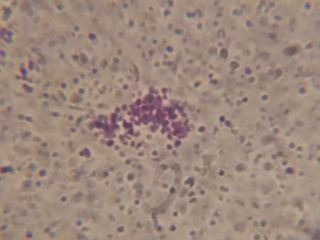 Meningococcal meningitis, cerebrospinal fluid smear containing neutrophils with and without bacteria Neisseria meningitidis