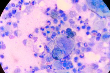 Malaria parasites in red blood cells under the microscope 400x