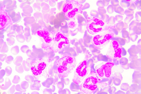 Neutrophil show in blood smear CBC test find with microscope.
