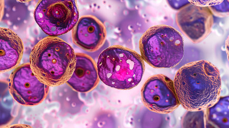 Microscopic View Rendered Image of Abnormal, Diseased Cells in Biology and Medicine Illustration