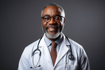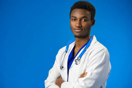 Portrait of a black doctor. African doctor with stethoscope - medicine and healthcare concept