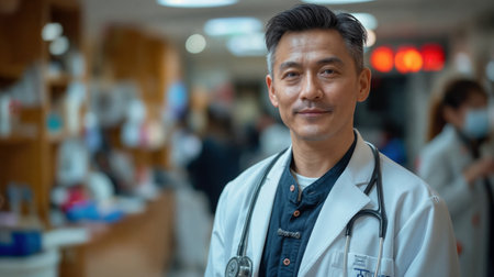 Portrait of an Asian doctor. Chinese or Japanese doctor with stethoscope - medicine and healthcare concept