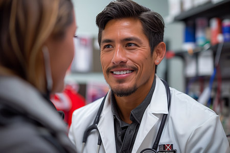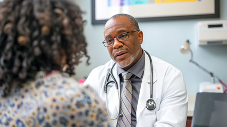 A family doctor conducts a routine check-up, highlighting the importance of primary care and early detection for long-term well-being This image emphasizes preventive healthcare and how regular visits contribute to effective health management Prioritize your health; schedule a check-up with your local family doctor AI Generative