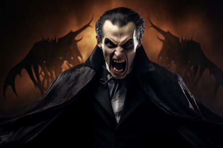 Male vampire opening mouth with fangs