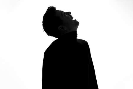 Silhouette of young man looking up being excited.