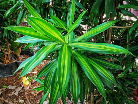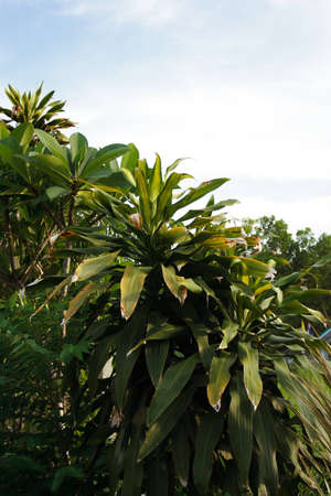 Pleomele or lily bamboo or Song of India plant Dracaena reflexa in the garden